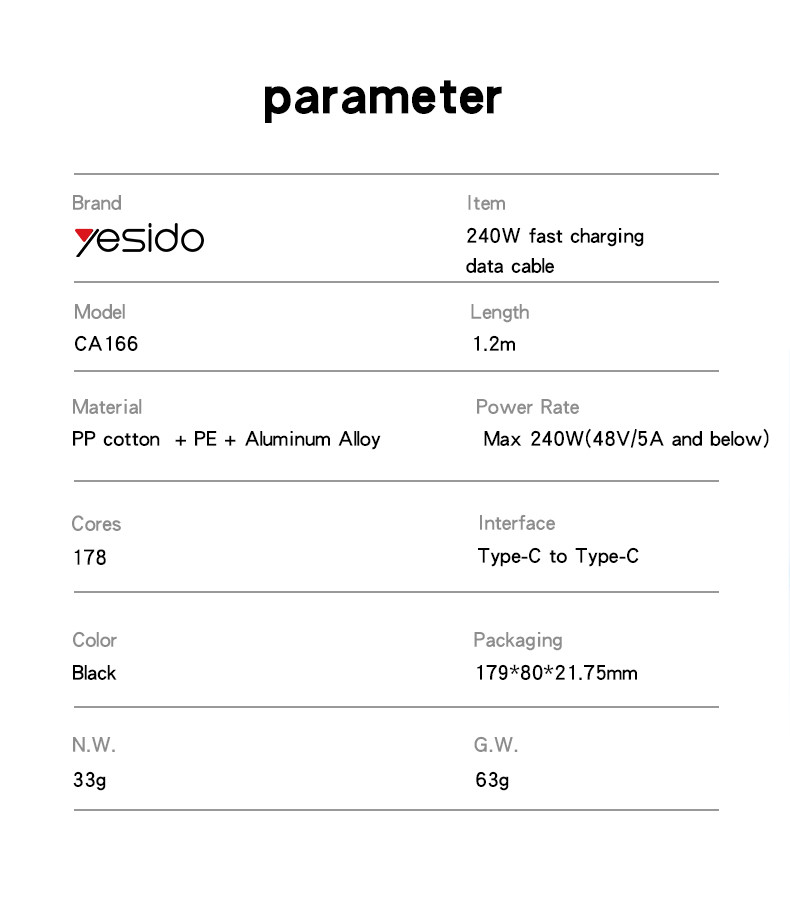 Yesido Dual Type-C Cable CA166